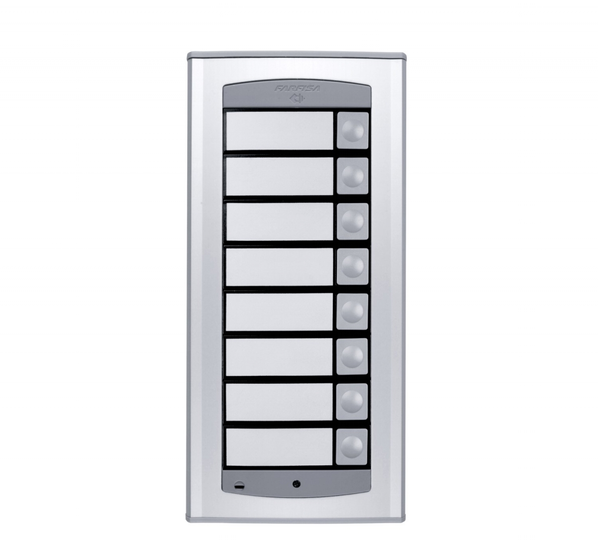 Door station on IP technology. Additional module of Agorà series. It is an expansion element with 8 buttons to be installed and connected to IPV11AGLS or IPV12AGLS. It is possible to install up to 16 expansion modules, for a total capacity of 130 calls. To be completed with a suitable number of AGL20 or AGL21 according to the required configuration.